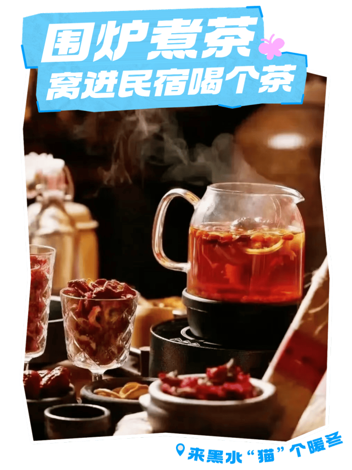 炉中炭火噼啪,火光跃动,正适合煮一壶当地藏茶,会享受的客人总爱围坐炉边,让茶香伴着火光,不知不觉就消磨半日时光。