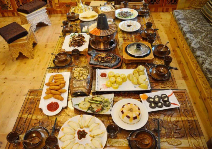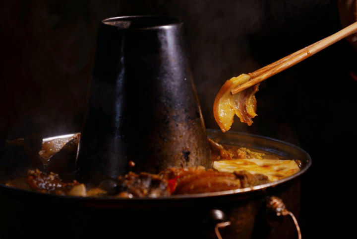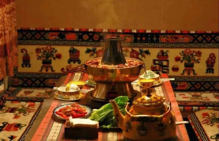 围坐在藏式土火锅前,铜锅里汤汁翻滚,牦牛肉的香气随着热气蒸腾,牛肉紧实有嚼劲,这是雪山草场滋养出的好味道。