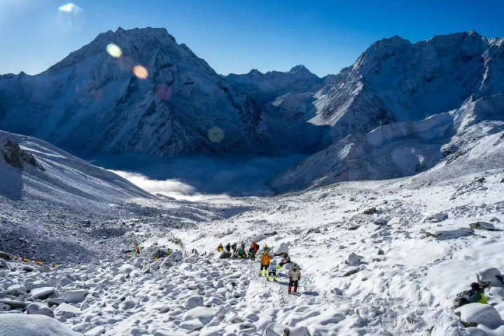 坐着全球海拔最高的客运缆车攀上达古冰川,这个季节的它,像是被仔细擦拭过的宝石,轮廓清晰,气质沉静。