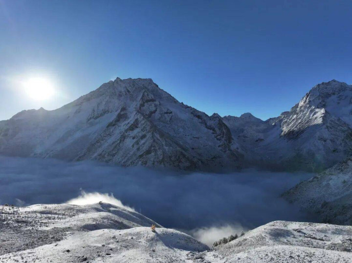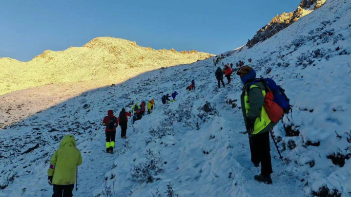 穿上轻便保暖的装备,从三奥雪山脚下出发。冬日的山林褪去了繁华,却更显巍峨雄峻。